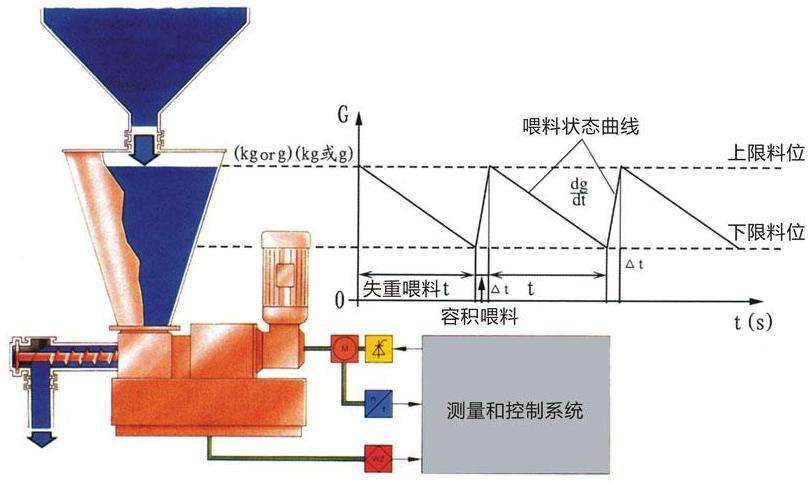 Control the discharge screw or electric vibration machine based on the rate of material weight reduction in the weighing hopper to achieve the purpose of quantitative feeding, namely the weight loss scale When the material in the weighing hopper reaches the lower limit of weighing, the discharge screw machine fixes the discharge amount according to the current speed, and controls the material in the silo to quickly drop into the weighing hopper. When the loading reaches the upper limit of weighing, it stops loading. Rapid loading can shorten the feeding time, improve the accuracy and control precision of weighing.