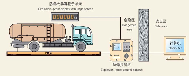 Based on commonly used electronic truck scales, various technical measures such as voltage reduction, current limiting, isolation, sealing, and optical communication are adopted to eliminate or block potential ignition sources (electrical sparks, electrostatic sparks, high temperatures, etc.) in the electrical circuits of the scales, thereby enabling the electronic truck scales to operate safely in corresponding hazardous areas.